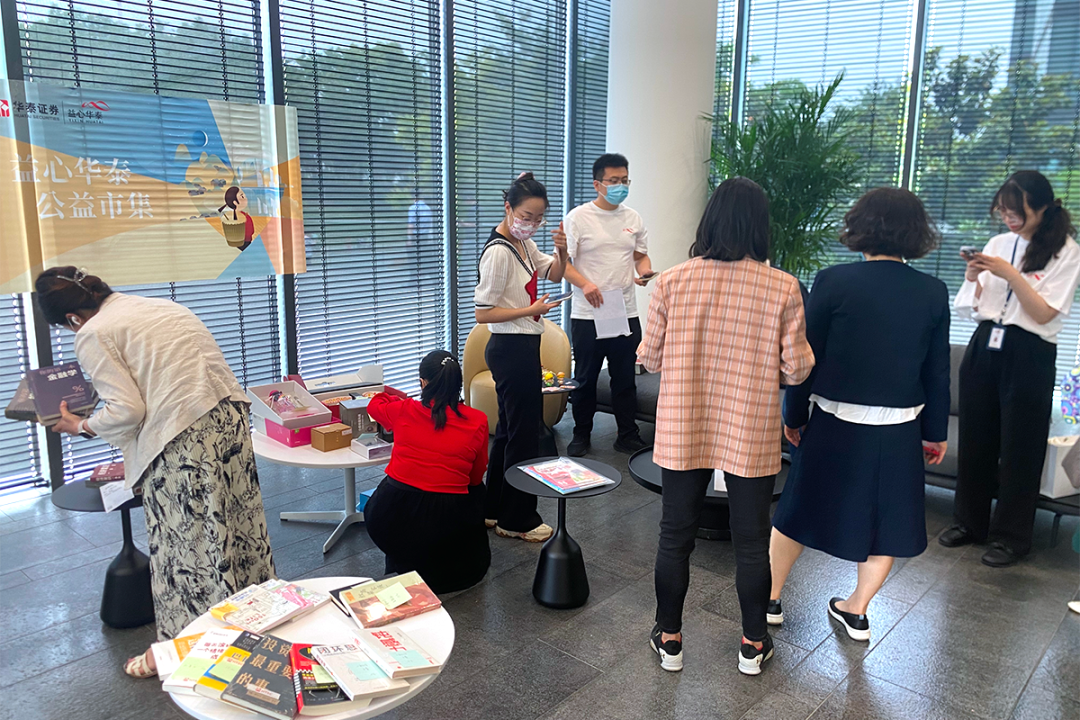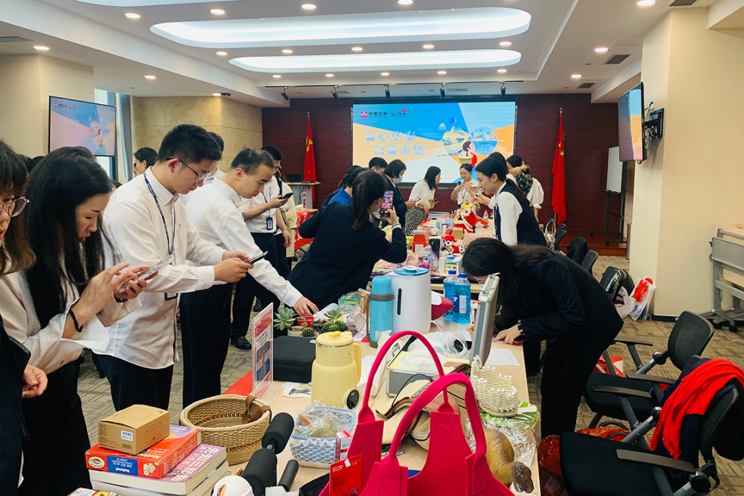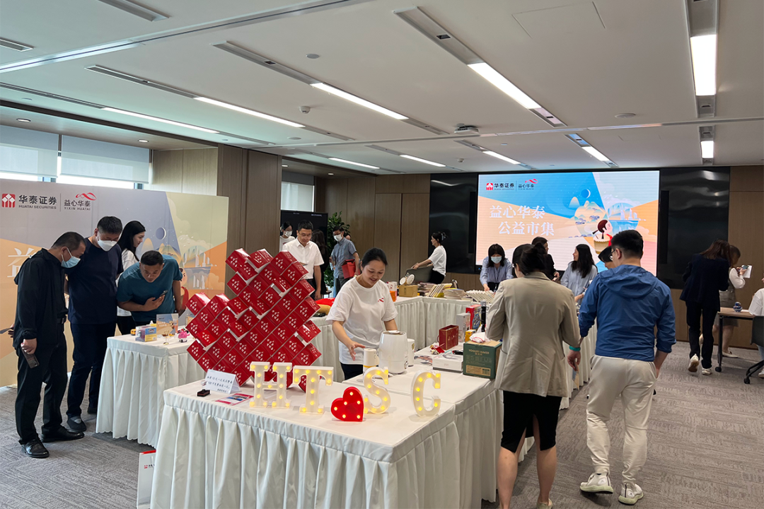 华泰证券北京、四川、上海、广东、深圳、安徽、湖北、辽宁等分公司,华泰国际等子公司多地联动举办公益市集,跨越空间一起为困境儿童捐款。
