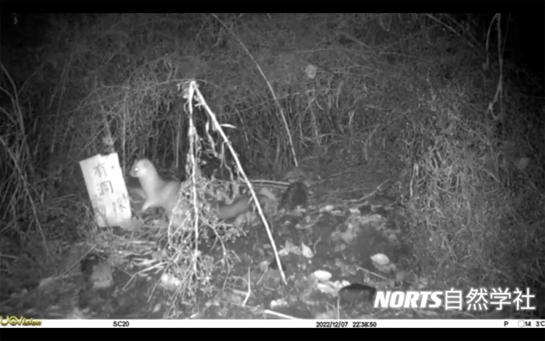 西交利物浦大学生态修复小组布设的红外相机拍到了黄鼬来此安家的身影