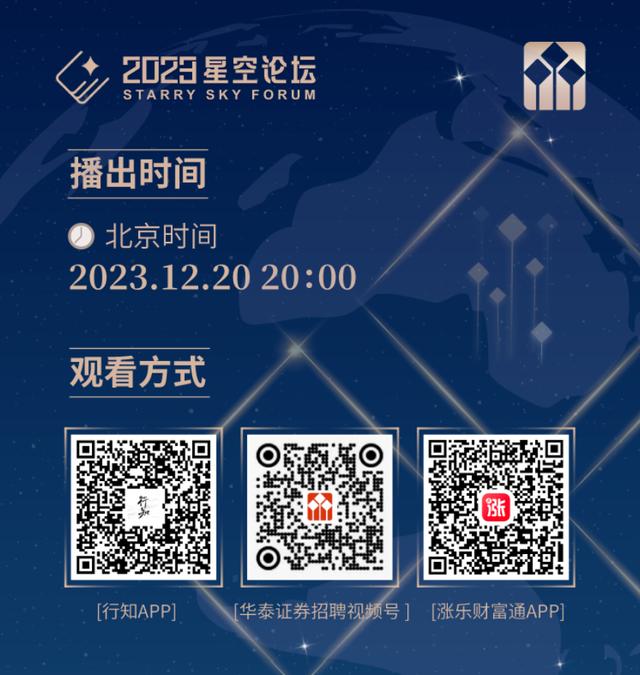 2023华泰证券星空论坛启幕在即,更多精彩敬请期待。12月20日,相约华泰证券星空论坛在线直播,聚力共创财富管理新阶段!