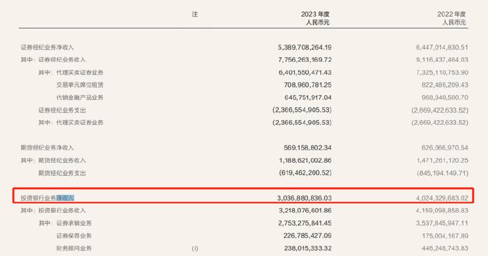 在IPO承销金额下滑的影响下,华泰证券投行业务收入也出现下滑。数据显示,2023年公司实现投行业务收入30.37亿元,同比下滑24.5%。