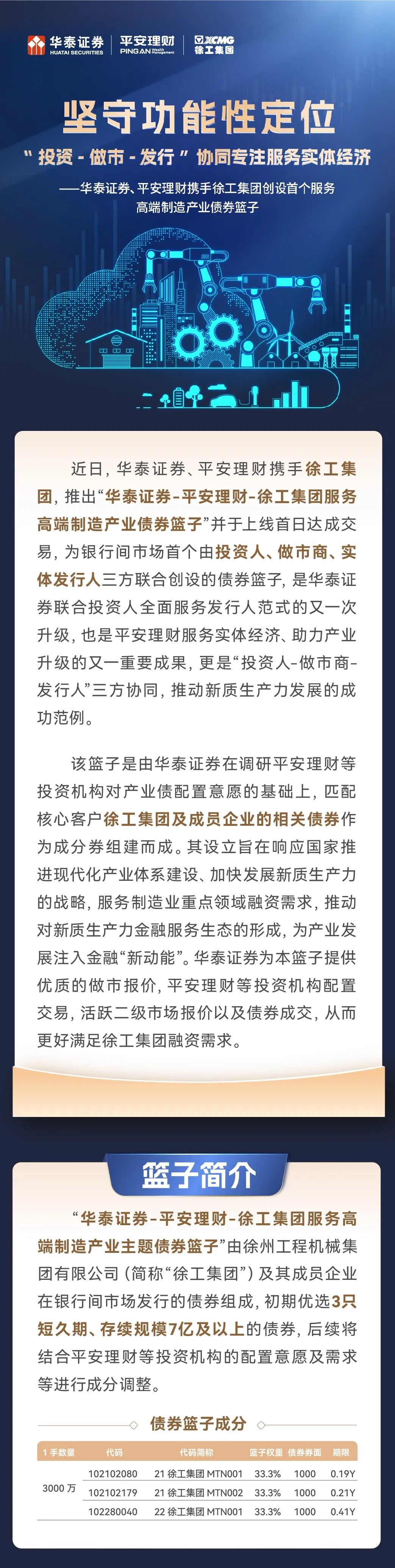 华泰证券、平安理财携手徐工集团创设首个服务高端制造产业债券篮子