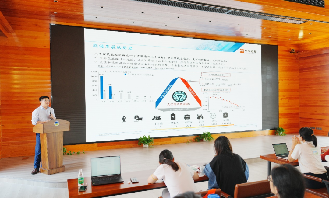 “中国化石能源储量低,进口依赖强,且单位GDP能耗高,能源转型刻不容缓”,华泰证券能源转型首席分析师刘俊向志愿者介绍了能源转型的必要性与发展前景。当前,中国正在不断完善碳交易市场制度,逐步引导高排放企业进行低碳转型和技术升级。未来,能源转型将致力于打造兼顾环境效益、社会效益、经济效益的新型电力系统,通过新政策、新技术、新供应商等打造新能源综合解决方案,助力实现2060碳中和目标。