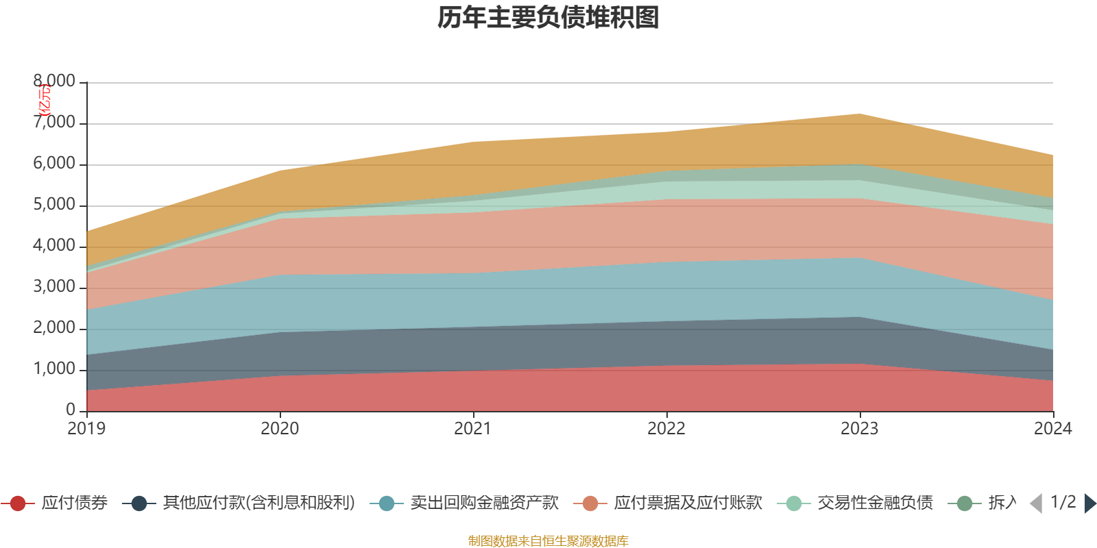 负债重大变化方面,截至2024年末,公司应付票据及应付账款较上期末增加27.56%,占公司总资产比重上升6.69个百分点;应付债券较上期末减少35.94%,占公司总资产比重下降3.65个百分点;其他应付款(含利息和股利)较上期末减少33.76%,占公司总资产比重下降3.31个百分点;卖出回购金融资产款较上期末减少15.97%,占公司总资产比重下降1.04个百分点。