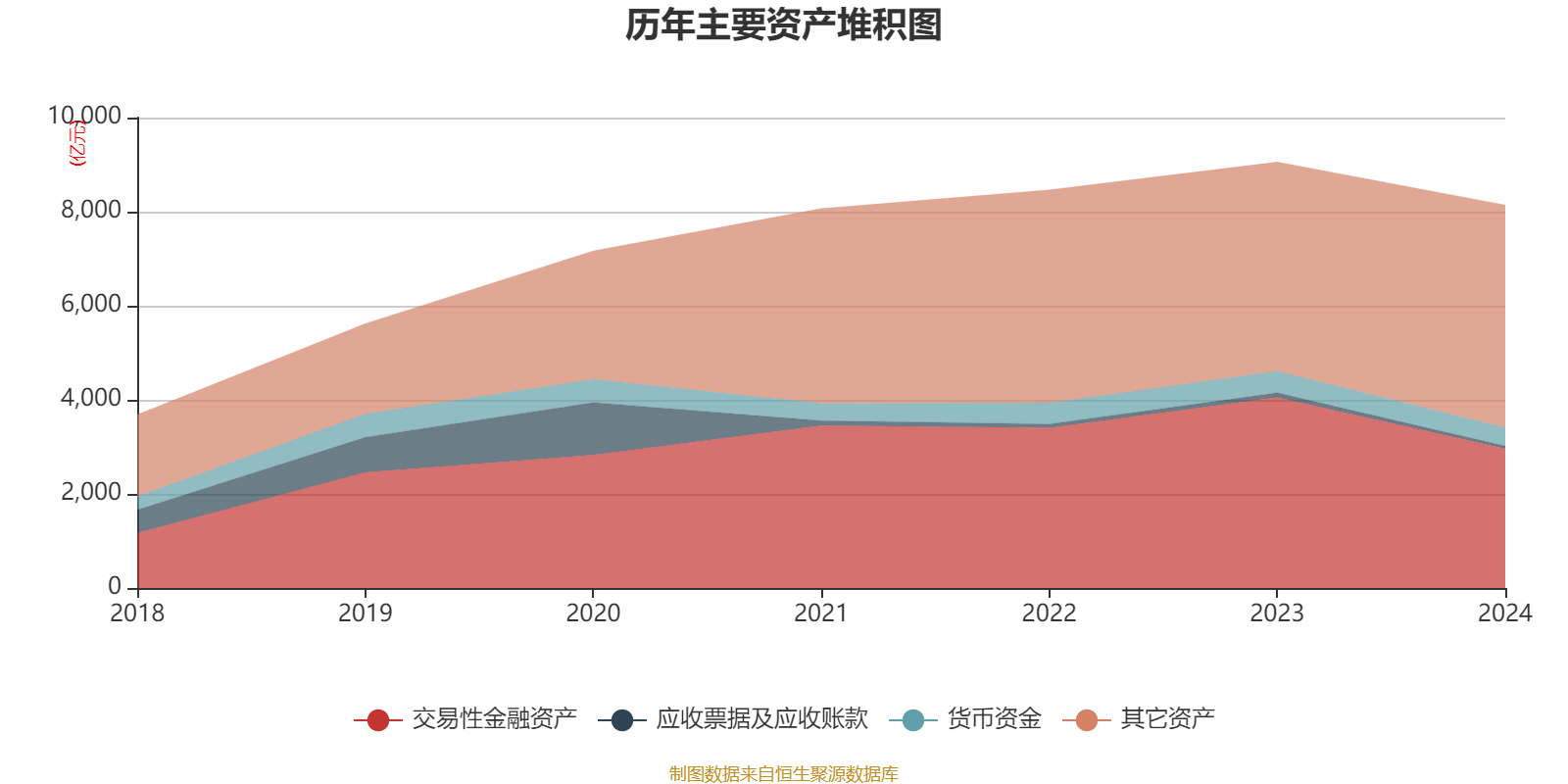 资产重大变化方面,截至2024年末,公司交易性金融资产较上期末减少26.88%,占公司总资产比重下降8.36个百分点;其他债权投资较上期末减少60.95%,占公司总资产比重下降0.95个百分点;无形资产较上期末减少72.91%,占公司总资产比重下降0.58个百分点;衍生金融资产较上期末减少38.55%,占公司总资产比重下降0.57个百分点。