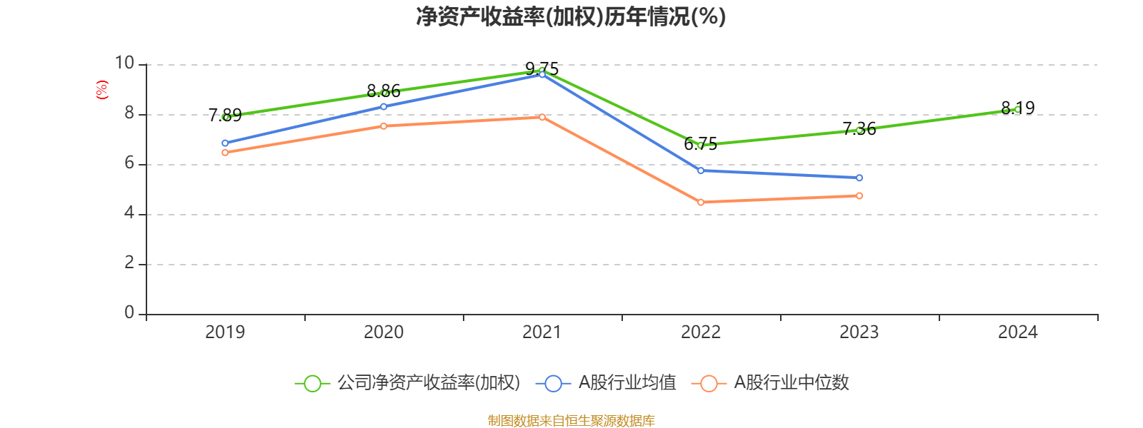 数据显示,2024年公司加权平均净资产收益率为8.19%,较上年同期上升0.83个百分点。