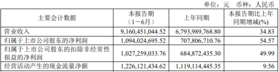 昨日晚间,拓普集团发布2023年半年度报告。今年上半年,拓普集团实现营业收入91.60亿元,同比增长34.83%;实现归属于上市公司股东的净利润10.94亿元,同比增长54.57%;实现归属于上市公司股东的扣除非经常性损益的净利润10.27亿元,同比增长49.99%;经营活动产生的现金流量净额为12.26亿元,同比增长9.56%。