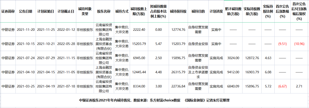 事实上,除了云投集团,中银证券另一股东上海金融发展投资基金(有限合伙)(下称“金融发展基金”)年内也先后宣布减持。