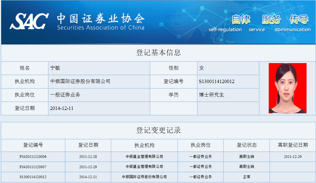 十年后,宁敏被调到中行旗下子公司中银基金,历任中银基金助理执行总裁、副执行总裁。