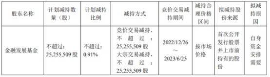 减持价格根据减持时的市场价格及交易方式确定,且不低于公司首次公开发行股票的价格,如因派发现金红利、送股、转增股本、增发新股等原因进行除权、除息的,则按照有关规定做除权除息处理。减持计划实施期间,如公司发生送红股、转增股本、增发新股或配股等除权事项,金融发展基金将对上述减持股份数量进行相应调整。