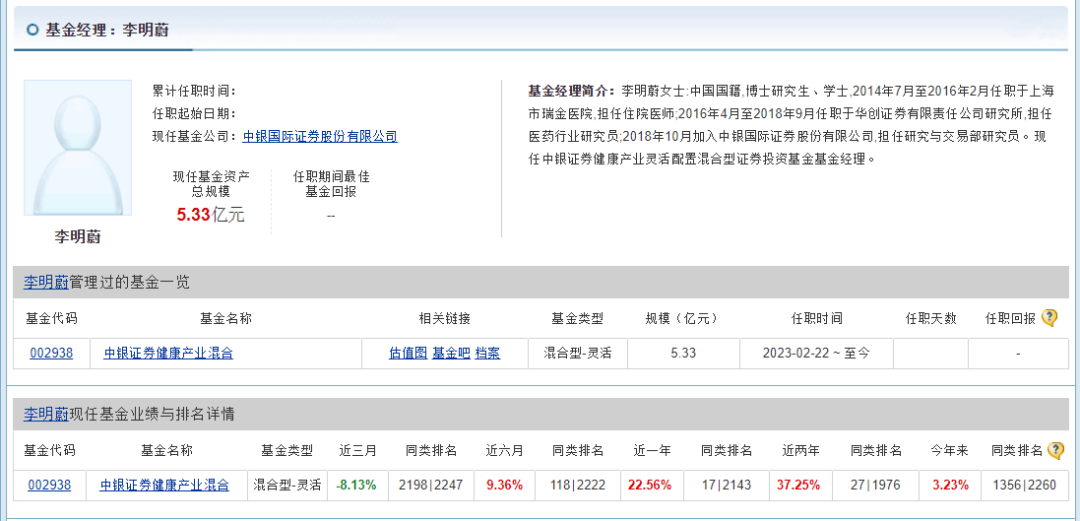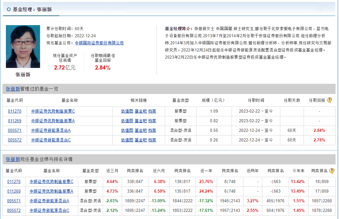 中银证券优势制造、中银证券健康产业分别交由张丽新和李明蔚单独管理。