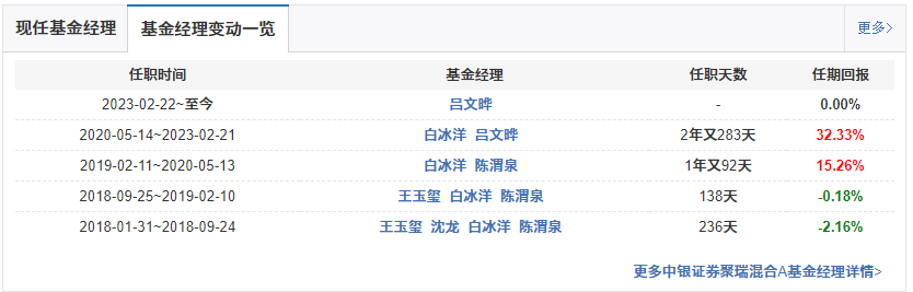 中银证券聚瑞交由吕文晔管理,他在上述4人中资历最老,累计任职时间有5年又198天。