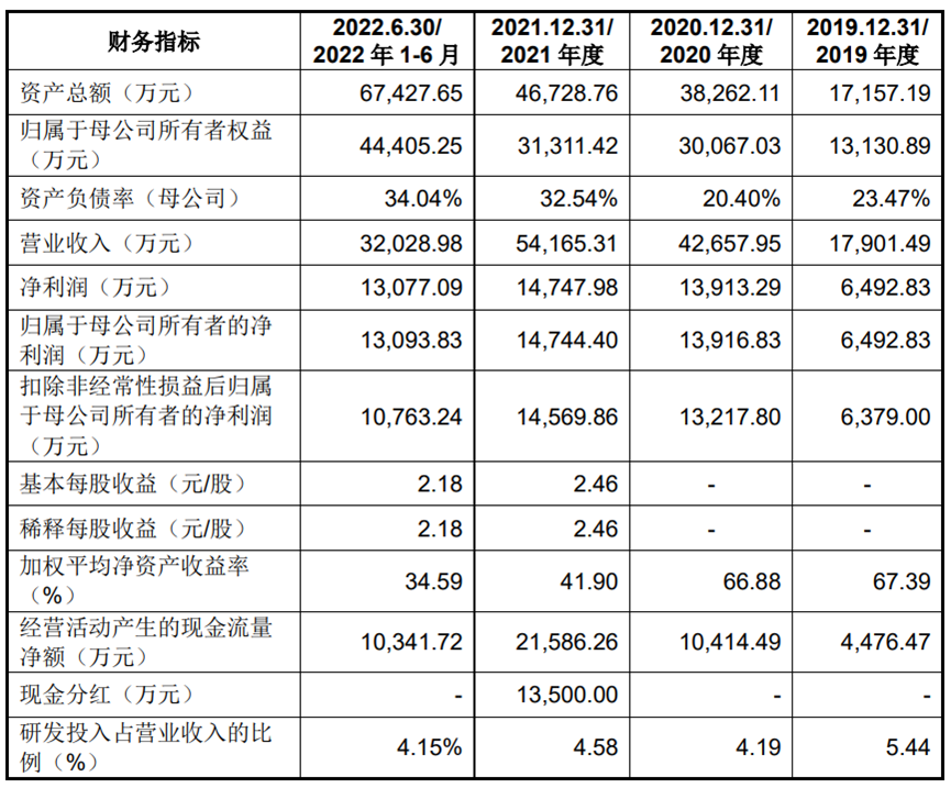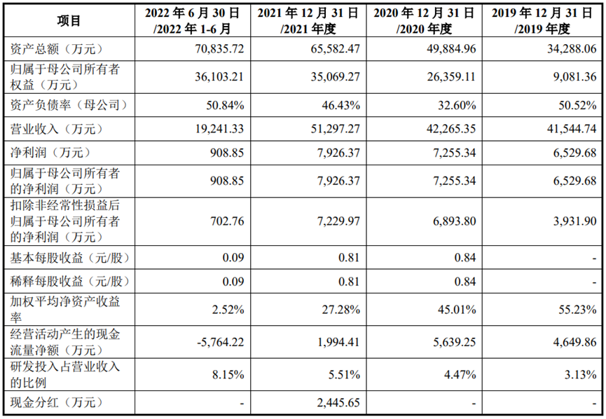 鸿安机械近几年净利润增长稍显乏力。2019年至2021年以及2022年上半年,鸿安机械实现营收分别为4.15亿元、4.23亿元、5.13亿元和1.92亿元,同期净利润分别为6529.68万元、7255.34万元、7926.37万元和908.85万元。