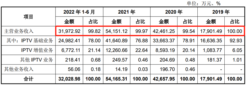 报告期内,IPTV业务收入占公司当期业务收入的比例分别为100.00%、99.54%、99.97%和99.82%,占比较大。其中IPTV基础业务营收占比在70%以上,是公司的重要收入来源。