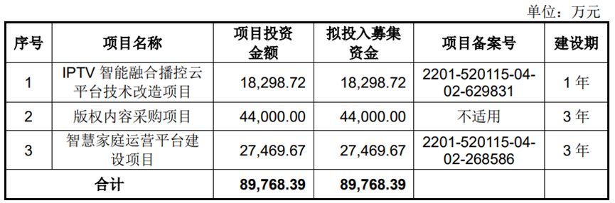 多彩新媒拟公开发行股份不超过2000万股,占发行后总股本比例不低于25%。预计募集资金8.98亿元,用于IPTV智能融合播控云平台技术改造项目、版权内容采购项目和智慧家庭运营平台建设项目。