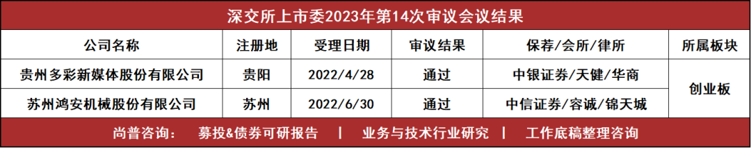 3月23日,深交所上市委举行了2023年第14次审议会议(参会上市委委员:孔祥杰、邓子欣、邓妮媚、陈坦坦、李文英),共审议2家企业,2家获通过。