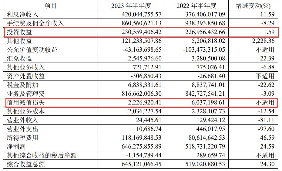 2023年1-6月,中银证券投资收益为2.31亿元,同比增长1.59%;信用减值损失222.69万元,上年同期为-603.72万元。