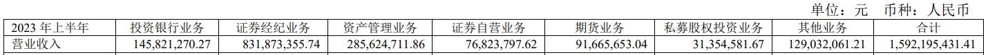 2023年1-6月,中银证券投资银行业务的营业收入为1.45亿元;证券经纪业务的营业收入为8.32亿元;资产管理业务的营业收入为2.86亿元;证券自营业务的营业收入为7682.38万元;期货业务的营业收入为9166.57万元;私募股权投资业务的营业收入为3135.46万元;其他业务的营业收入为1.29亿元。