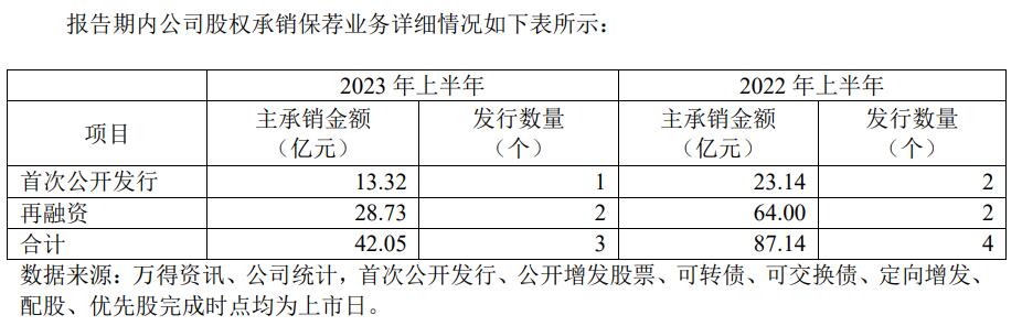 投资银行业务中,股权融资业务方面,报告期内,中银证券主承销金额42.05亿元。其中,IPO项目1个,主承销金额13.32亿元;再融资项目2个,主承销金额28.73亿元。