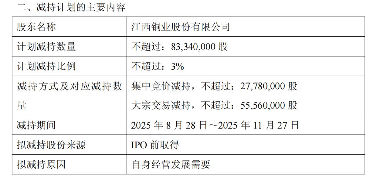 8月21日晚间,中银证券发布公告称,公司股东江西铜业股份有限公司(以下简称“江铜股份”)因自身经营发展需要,计划在未来3个月内,通过集中竞价方式及/或大宗交易方式合计减持公司股份,占比不超过公司总股本的3%。