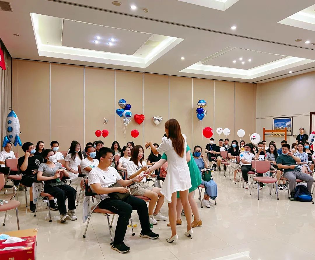 活动现场首先由领导致辞,接着通过“为你歌唱”、“你画我猜”、“背对背拥抱”等精彩环节,巧妙地拉近了青年之间的距离,增进了青年之间的交流,真情告白环节更使活动氛围推向高潮。最终,7对男女当场牵手成功,带着大家的祝福走进新的篇章。