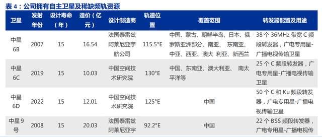公司拥有自主卫星及稀缺的通信频率、卫星轨道资源。