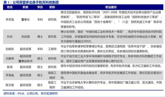 公司多名高管曾在航天科技集团总部及其下属单位担任总体部部长、主管设计师等重要职务,熟悉中国空间事业相关领域和专业技术发展方向,为公司打造深厚的技术基础。