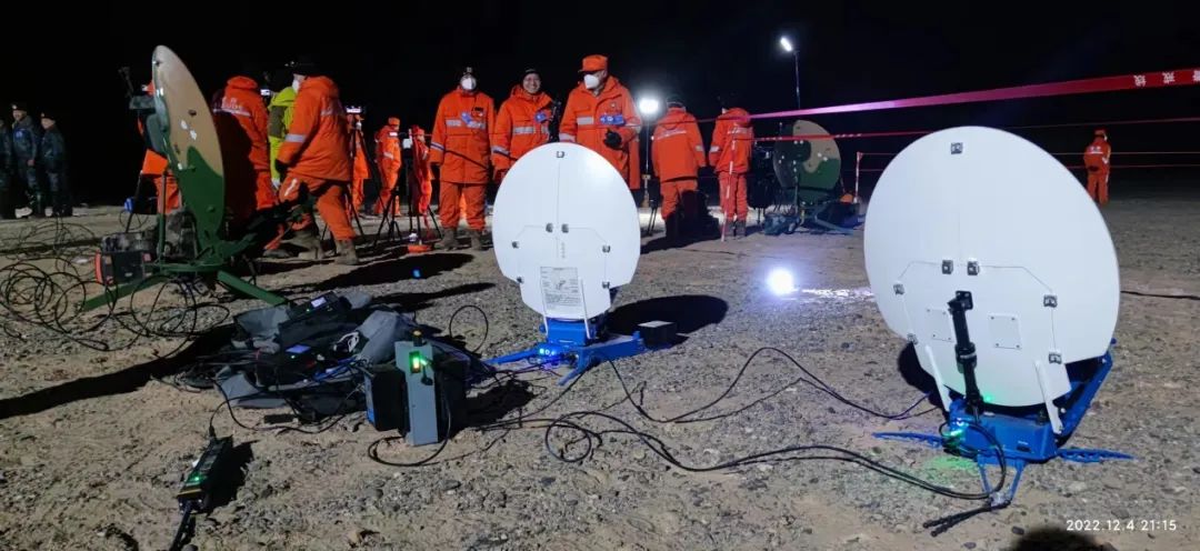 相较于之前的载人飞船返回任务,低温与暗夜是本次回收任务的两大挑战。中国卫通为保障任务万无一失,做了大量预演准备工作,配合中央广播电视总台在现场架设高通量卫星终端,包括1套Ka卫星便携站、2套Ku卫星便携站、2套Ku卫星车载动中通等设备,并提供了中星16号卫星和亚太6D卫星等高通量卫星资源,互为备份保障卫星网络传输服务。在神舟十四号抵达降落地点后的3分钟内,快速建立高通量卫星传输链路,实现直播画面传输,3位航天员的出舱场景得以第一时间呈现在广大观众面前。