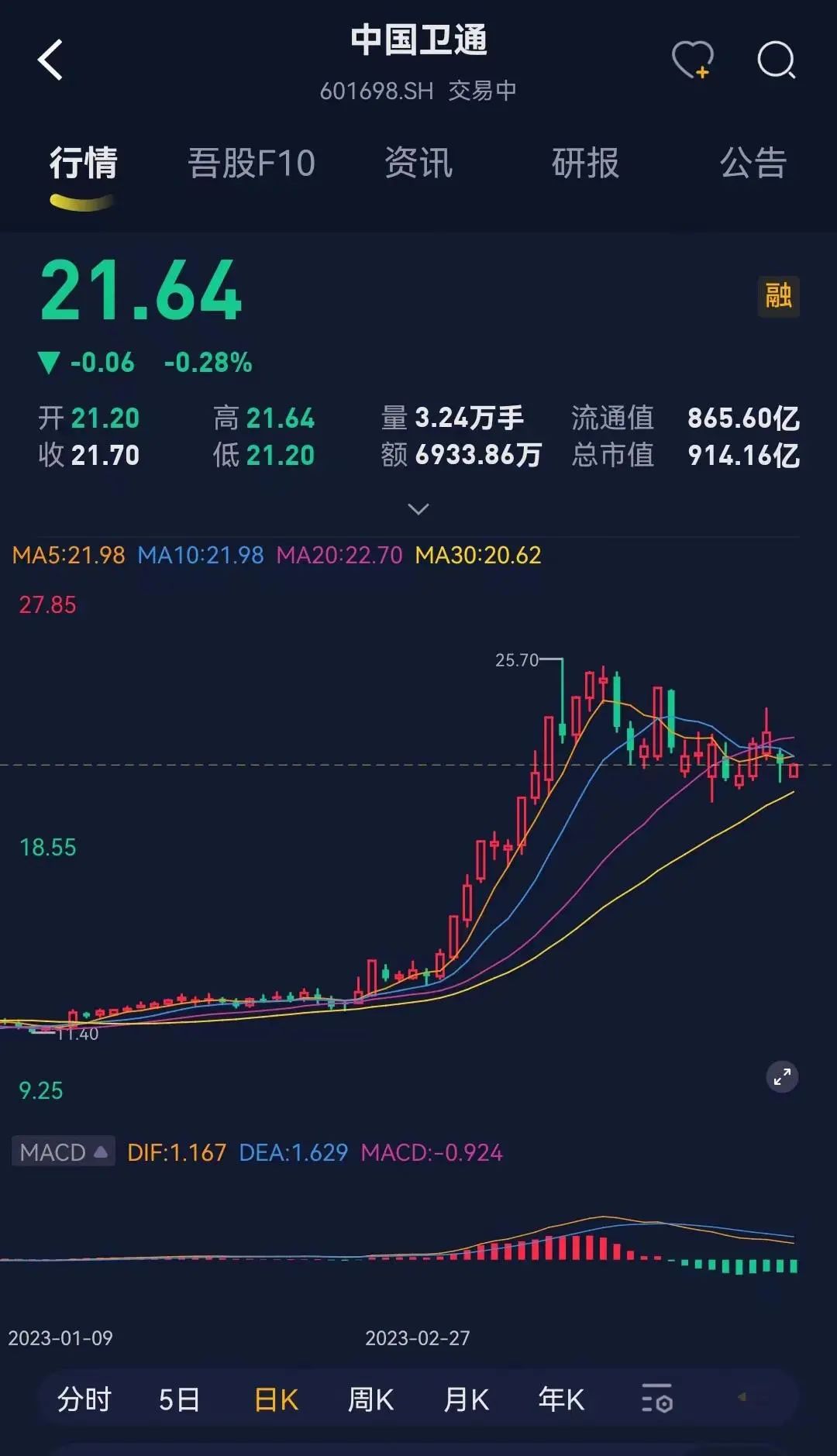 中国卫通从2月中旬一直涨到3月中旬,仅一个月的时间股价就翻倍。而且中国卫通的总市值、流通市值并不低,颇有大象起舞之势。