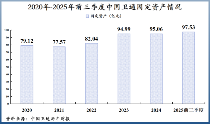 坐拥这些轨道位置,就等于拥有了不可再生的太空稀缺资源。截至2025年三季度末,这些“太空资产”在中国卫通的账面上,体现为高达97.53亿元的固定资产。