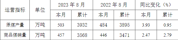 潞安环能:前8月商品煤销量合计3568万吨,同比上涨2.79%