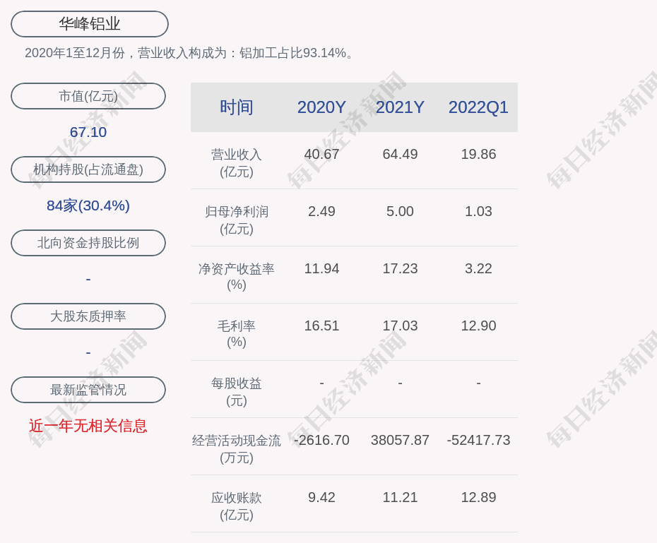 2020年1至12月份,华峰铝业的营业收入构成为:铝加工占比93.14%。