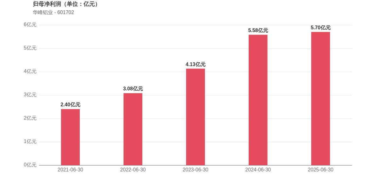 在2025年上半年,华峰铝业的经营业绩呈现增收不增利的态势,营业收入同比增长20.87%至59.64亿元,但归母净利润仅微增2.15%至5.70亿元。