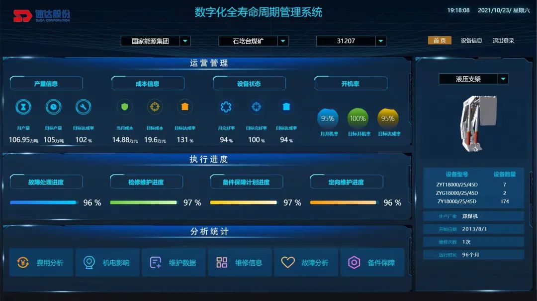 通过开发建设数字化全寿命周期设备管理系统(数据驾驶舱、芯片系统等),进行软件调试指导,操作维护培训,巡矿系统体检,系统故障排查,软件升级维护等,实现数字化全寿命周期管理。