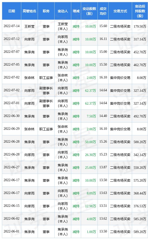 证券之星讯,根据7月18日市场公开信息、上市公司公告及交易所披露数据整理,郑煤机(601717)最新董监高及相关人员股份变动情况:2022年7月14日公司董事王新莹共减持公司股份10.0万股,占公司总股本为0.0056%。变动期间公司股价上涨1.1%,7月14日当日收盘报15.65元。