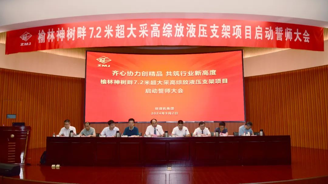 9月2日,郑煤机在南三楼多功能厅隆重召开榆林神树畔7.2米超大采高综放液压支架项目启动誓师大会,神树畔矿业公司总经理訾怀光、高级顾问刘永安、唐德茂,中煤科工开采研究院智能开采装备研究分院院长马英,郑煤机煤机板块党委书记付祖冈、总经理孟贺超及煤机板块领导班子,用户及合作单位相关负责人,郑煤机相关单位中层助理及以上管理人员、工区负责人参加会议,会议由付祖冈主持。