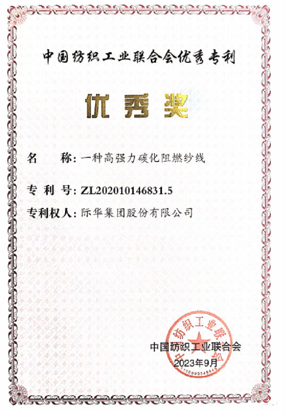 近日,根据《中国纺织工业联合会优秀专利评选办法》,经中国纺织工业联合会组织评审,际华集团荣获两项中国纺织工业联合会优秀专利优秀奖,为“一种高强力碳化阻燃纱线”和“立体渐变叠加荒漠迷彩布”。