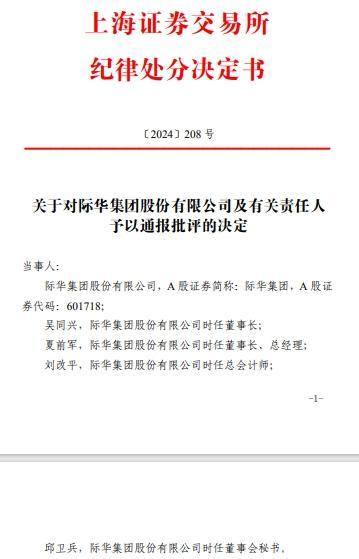 对此,上海证券交易所作出如下纪律处分决定:对际华集团及时任董事长吴同兴,时任董事长、总经理夏前军,时任总会计师刘改平,时任董事会秘书邱卫兵予以通报批评。对于上述纪律处分,上海证券交易将通报中国证监会,并记入证券期货市场诚信档案数据库。