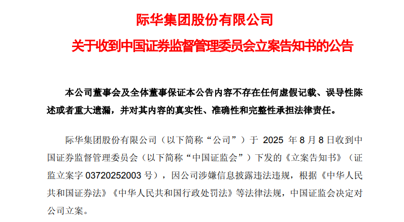 根据公告披露,际华集团于8月8日收到证监会的《立案告知书》,调查指向其存在涉嫌信息披露违法违规行为。这并非际华集团首次涉及信息披露问题——此前上交所曾于2024年11月对其未及时披露借款事项、募投项目延期未履行审议程序等违规行为给予通报批评。监管记录显示,时任董事长夏前军等高管均被追责。