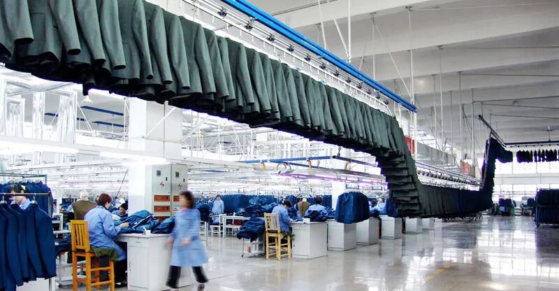 圣瑞思智能吊挂系统作为生产线智能化改造的核心装备,在际华3502智能工厂发挥了关键作用,通过自动化物料输送和实时生产调度,彻底改变了服装生产模式。