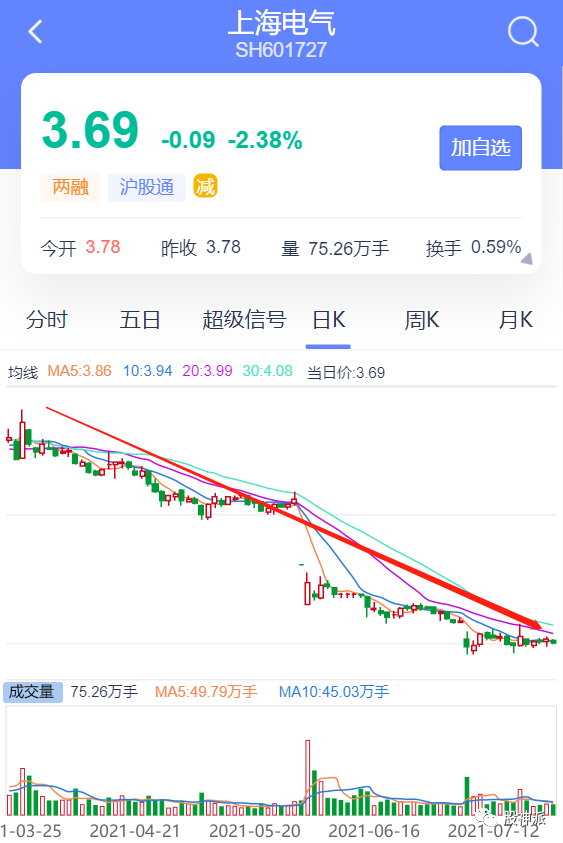 公司这么大的亏损,股价自然不好过。二级市场上,上海电气A股的股价已较年初高点累计下跌近30%。