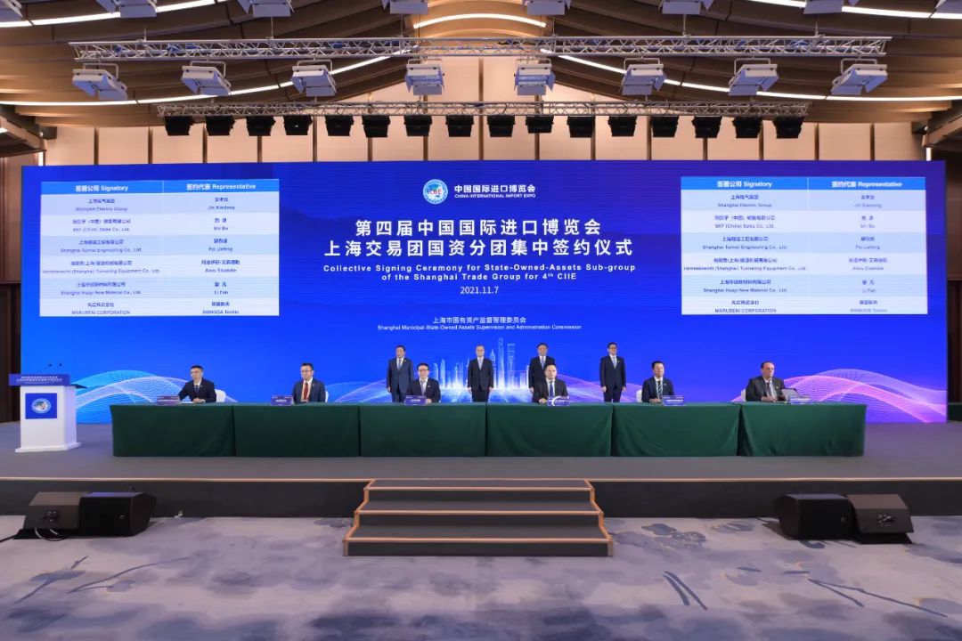 11月7日,第四届中国国际进口博览会上海交易团国资分团集中签约仪式在国家会展中心(上海)举行,包括上海电气在内的9家企业集团、11个项目进行了集中签约,涉交易金额达39.5亿元人民币。在上海市副市长张为、市政府副秘书长华源和上海市国资委党委书记、主任白廷辉的共同见证下,上海电气与斯凯孚(SKF)签署战略合作协议,上海电气集团党委书记、董事长冷伟青、副总裁金孝龙出席。