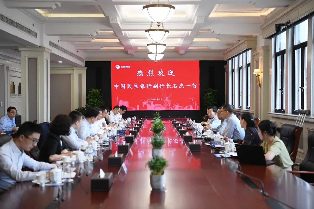 7月19日,中国民生银行总行党委委员、副行长石杰一行到访上海电气,同上海电气党委副书记、总裁刘平围绕如何深化银企合作、共同推动高质量发展等话题进行深入交流。