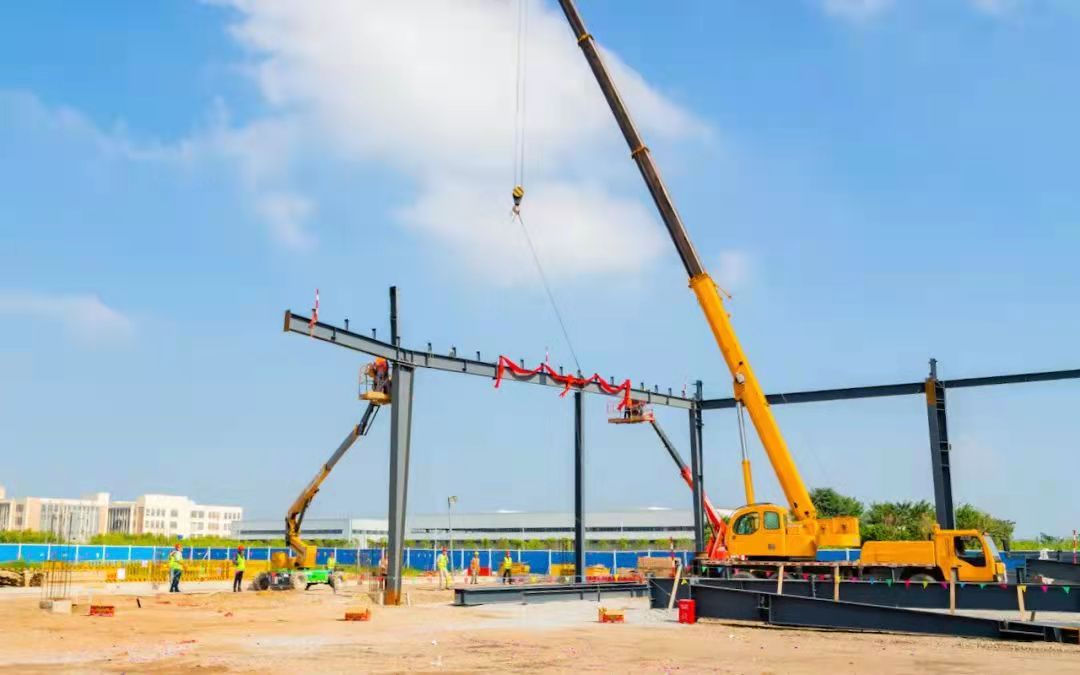海立新能源*汽车空调压缩机项目首榀钢架完成吊装