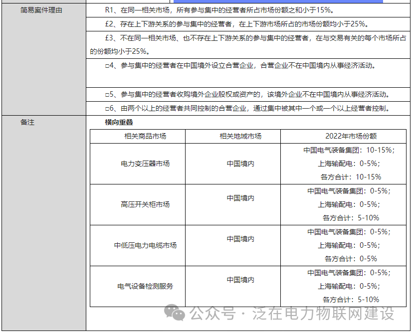 此前,中国电气装备集团有限公司收购上海电气输配电集团有限公司股权案公示表显示如下: