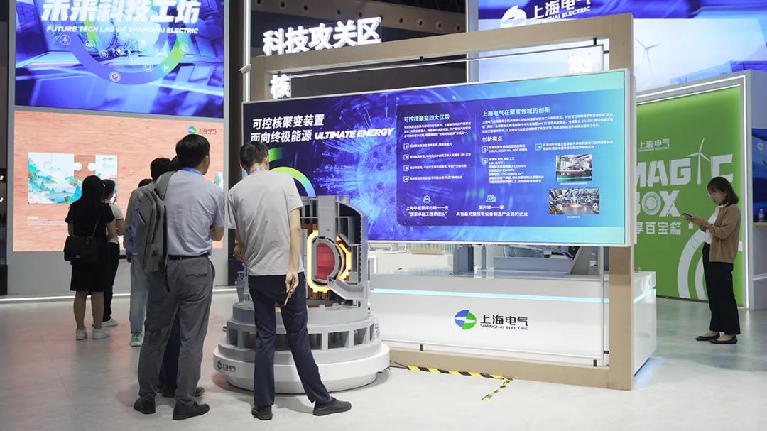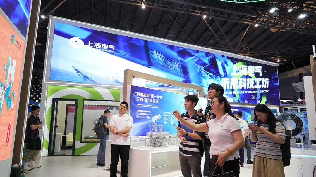 在本届展会上,上海电气坚持服务国家战略,紧贴国家需求,设置了“科技攻关区”和“科技创新区”,集中展示风、光、储、氢、燃、核重大科技攻关项目的最新成果,以及“2+X”开放式科技创新体系,为高校、科研院所及国家卓越工程师团队提供展示平台,促进产学研深度融合,推动科技成果转化,为服务国家战略贡献力量。