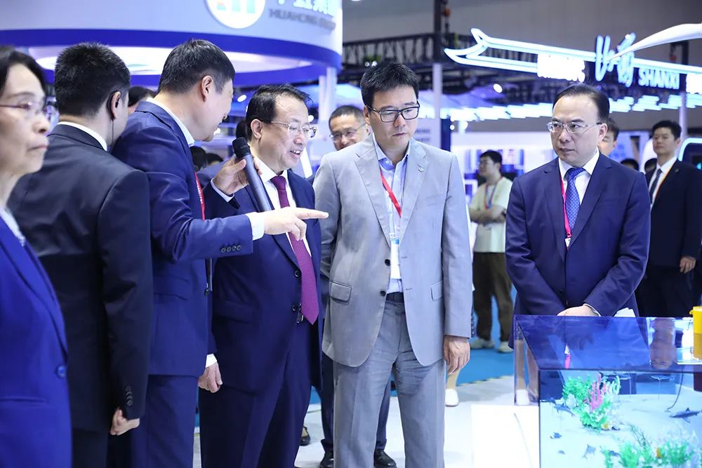 6月12日上午,中国(上海)国际技术进出口交易会(以下简称“上交会”)开展首日,上海市委副书记、市长龚正等领导在巡馆期间亲临上海电气展区,在上海电气集团党委书记、董事长吴磊的陪同下,听取上海电气“服务国家战略、紧贴国家需求,积极探索未来科技”的相关成果汇报。上海电气党委委员、常务副总裁董鑑华,副总裁贾廷纲陪同。