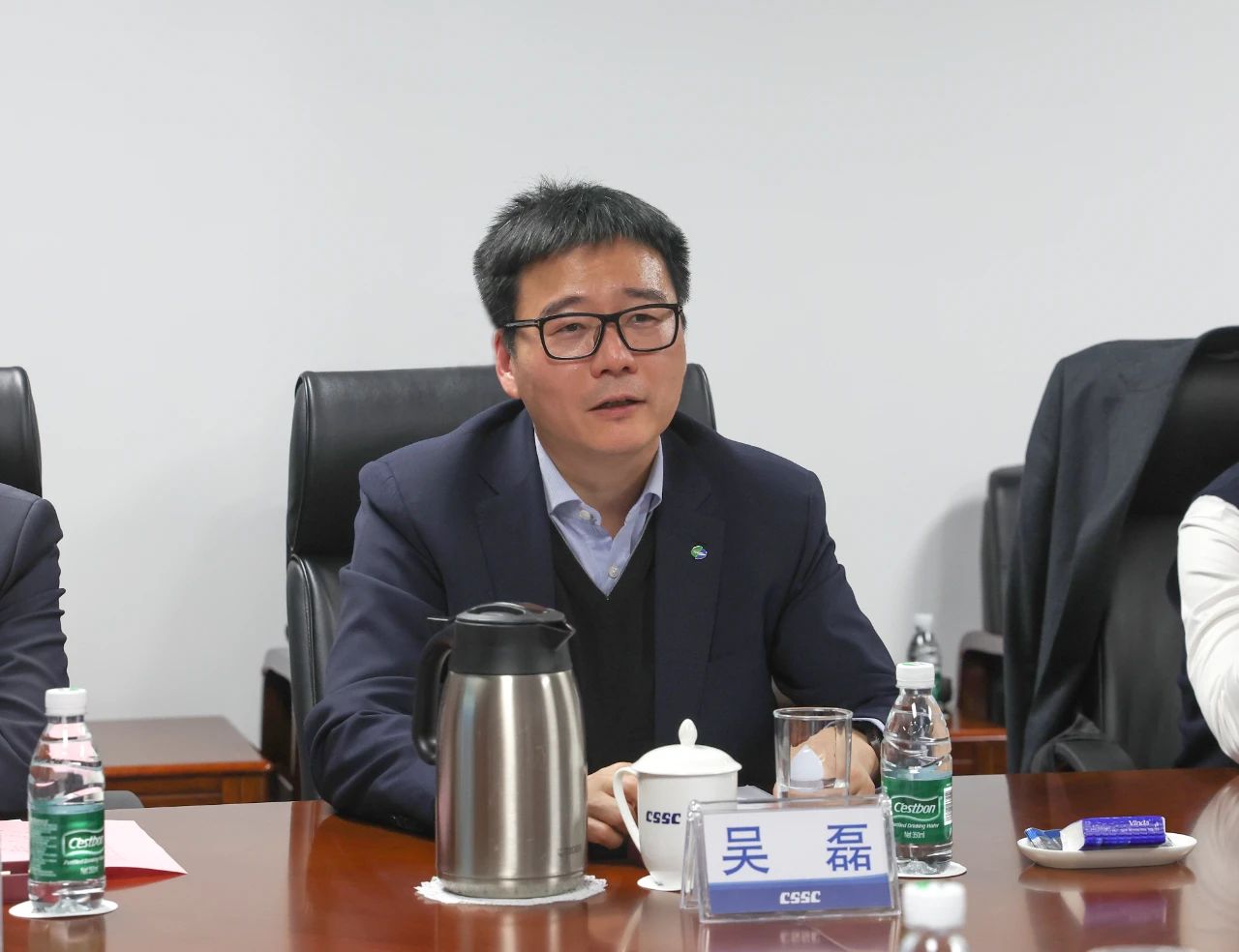 徐鹏对吴磊一行的来访表示欢迎,并介绍了中船集团发展概况。徐鹏表示,中船集团将持续以习近平新时代中国特色社会主义思想为指导,按照“1-1-7-8”总体思路奋力推进世界一流船舶集团建设迈上新台阶。中船集团与上海电气集团有着深厚情谊与良好合作基础,希望双方在科技创新、资本运作、国际业务、企业管理等方面进一步加强合作,深化互鉴互补,打造国有企业同城合作典范,为上海市加快“五个中心”建设,全面推动强国建设、民族复兴伟业作出更大贡献。