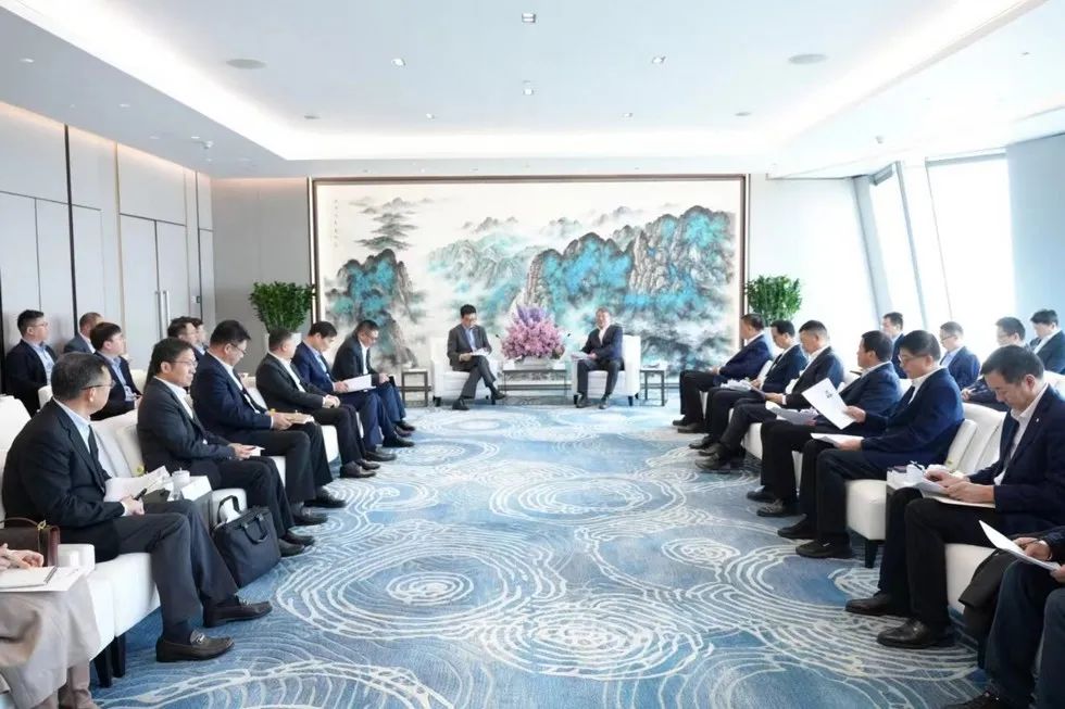 华润集团副总经理韩嵩,首席战略官陈荣,上海电气党委委员、副总裁金孝龙,副总裁贾廷纲,以及双方相关负责人会见时在座。