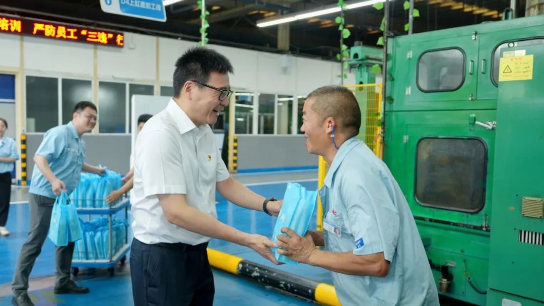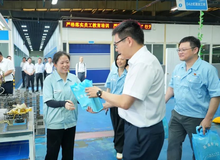 党课结束后,吴磊深入生产车间慰问高温作业员工,送上防暑物资并叮嘱做好健康防护。调研中,他重点考察数字化产线及视觉识别+AI算法质检系统,该系统助力绵阳海立获四川省“智改数转重点企业”等称号,其精益管理模式更实现平均班产大幅提升,制造效率达行业领先水平。吴磊一行还参观了绵阳海立的党员活动室。