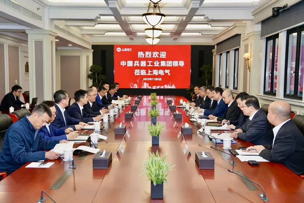 11月6日下午,中国兵器工业集团有限公司(以下简称“中国兵工集团”)党组成员、副总经理史志荣到访上海电气,与上海电气集团党委委员、副总裁贾廷纲就共同服务国家战略、拓展多领域合作进行深入交流。